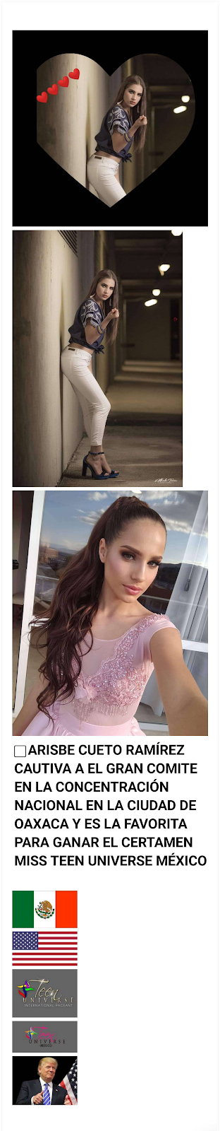 De lo cual sin duda mi candidata a miss teen Universe 2018 arisbe Cueto Ramírez se perfila como una de las favoritas y de ahí una gran expectación debido a que no he podido saber a ciencia cierta la fecha exacta de la gran final de miss teen universe México 2018